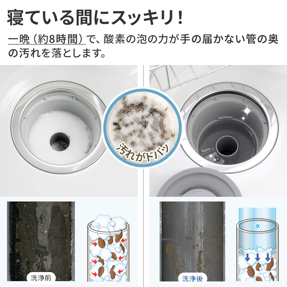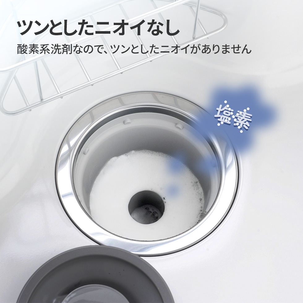 | 成分 | 過炭酸ナトリウム、発泡助剤、安定剤、界面活性剤 【液性:弱アルカリ性】 |