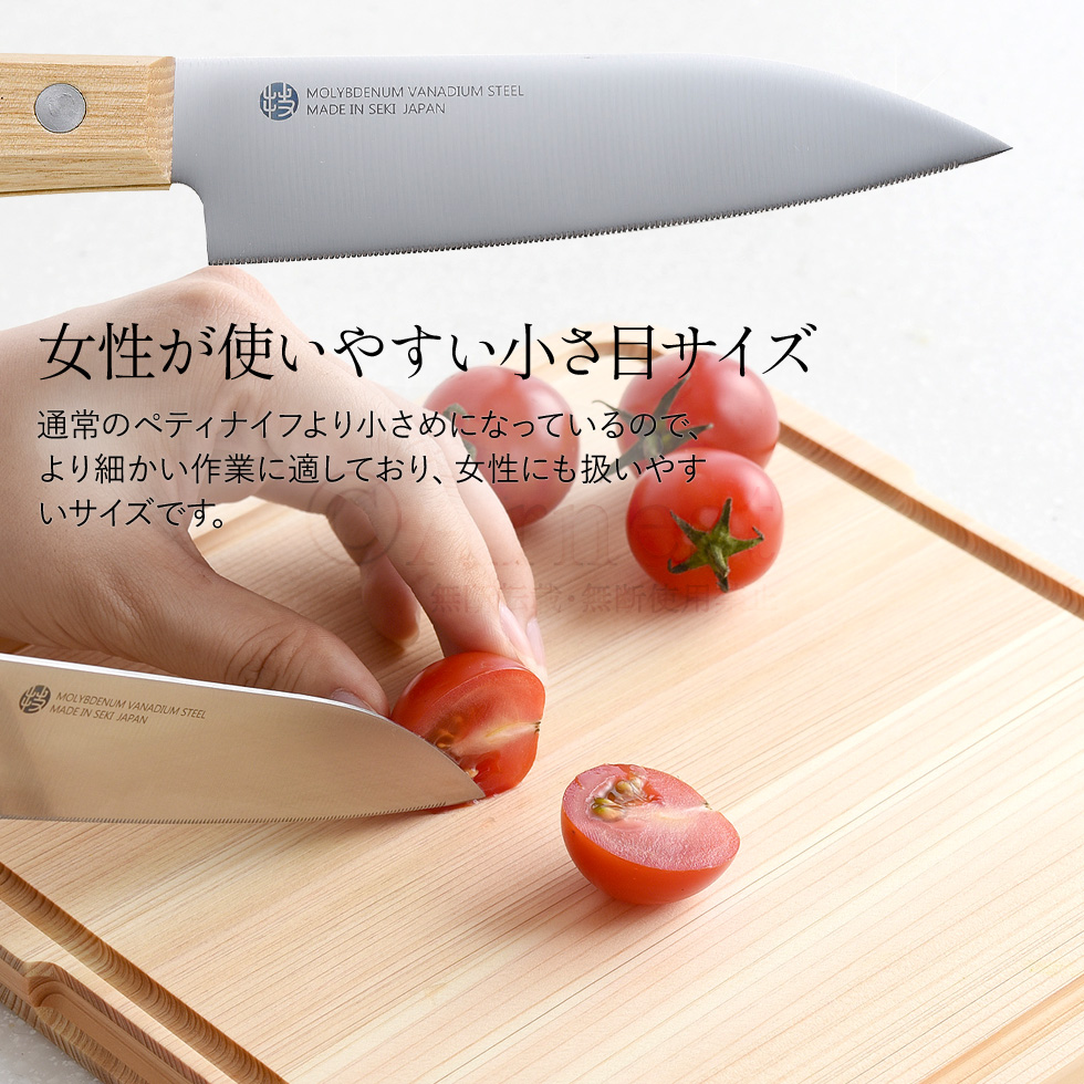 | 材質 | 刃:モリブデンバナジウム鋼 ハンドル:天然木(ホワイトアッシュ・ウレタン塗装) 鋲:ステンレス鋼 |