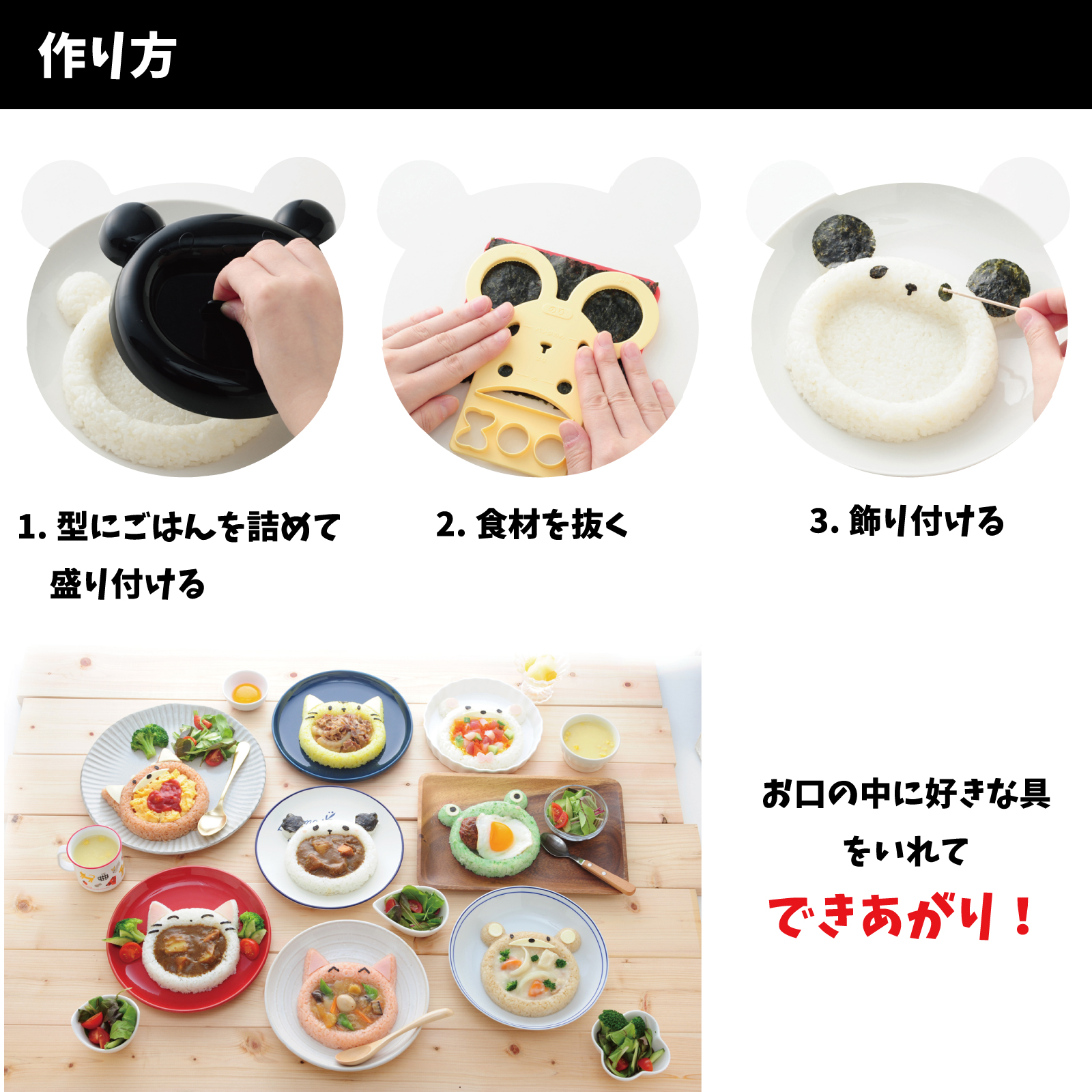 | セット内容 | パンダご飯型…1個 ネコご飯型…1個 パンダカッター…1枚 ネコカッター…1枚 カッターマット…1枚 使用説明・使い方ガイド…1枚 |